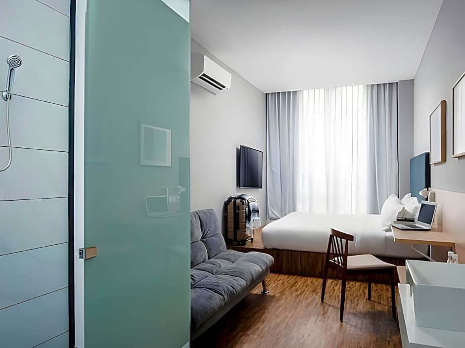 Featuring wall-to-ceiling windows fitted with sheer and blackout curtains, this air-conditioned room opens up to views of the city. The room is equipped with a flat-screen TV and a desk. The private bathroom includes shower facilities, a hairdryer and free toiletries.